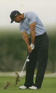 I noticed that Tiger's right hand is a little more rolled on the grip to where # 3 is not aft. Am I seeing things? What does he have to do to get the pp behind the shaft? Is that why he practices that (what looks like to me) severe start-up swivel? Els also looks to have the same grip. Does this explain the high right forearm at address? The higher the right forearm at address the more severe the startup swivel? Seems simpler to start with it closer to the plane (sweetspot plane that is)