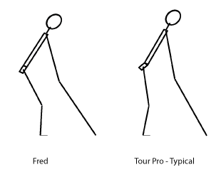 I searched the 6th Edition and the word P-o-s-t-u-r-e doesn't exist. More or less I was looking for Hip Motion, Knee Bend and Weight Shift. While viewing the Address Posture of Pro's, I kind-of abstracted the one below. In contrast to the Posture named "Fred", the Pro's look a little forward leaning.