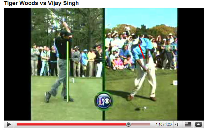 VJ Singh always hits down with his driver - note the forward clubshaft lean. However, he has a large amount of secondary axis tilt.